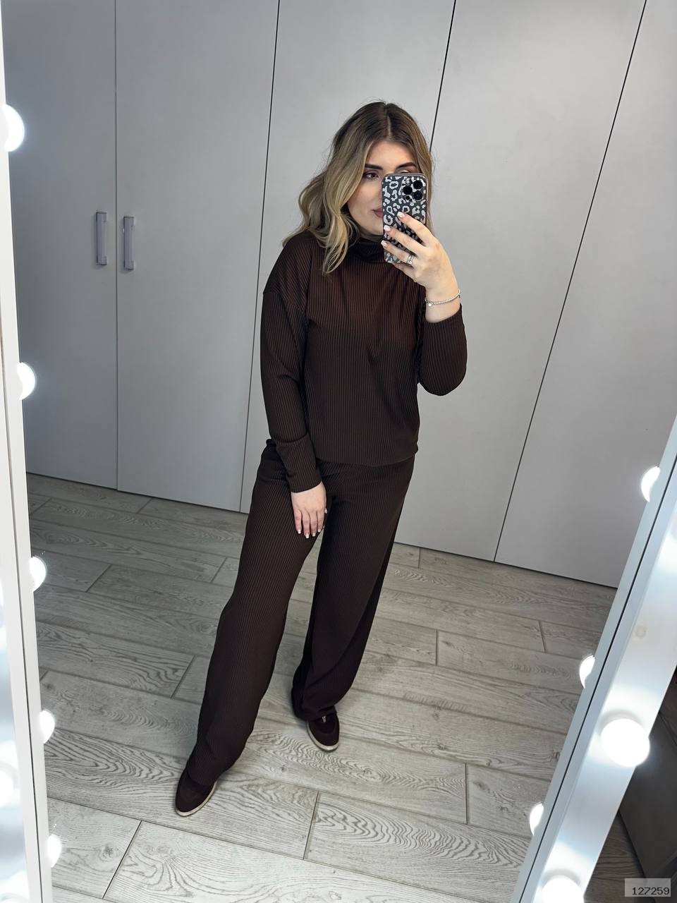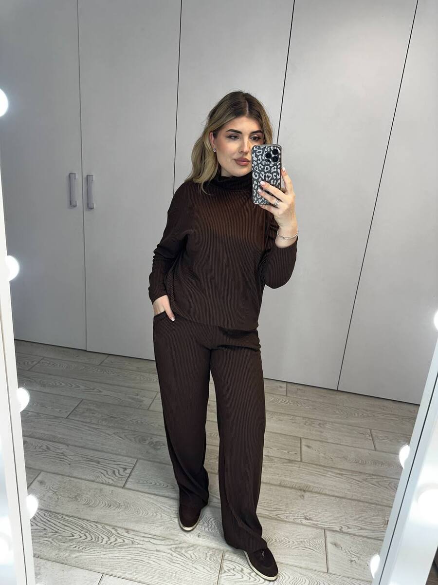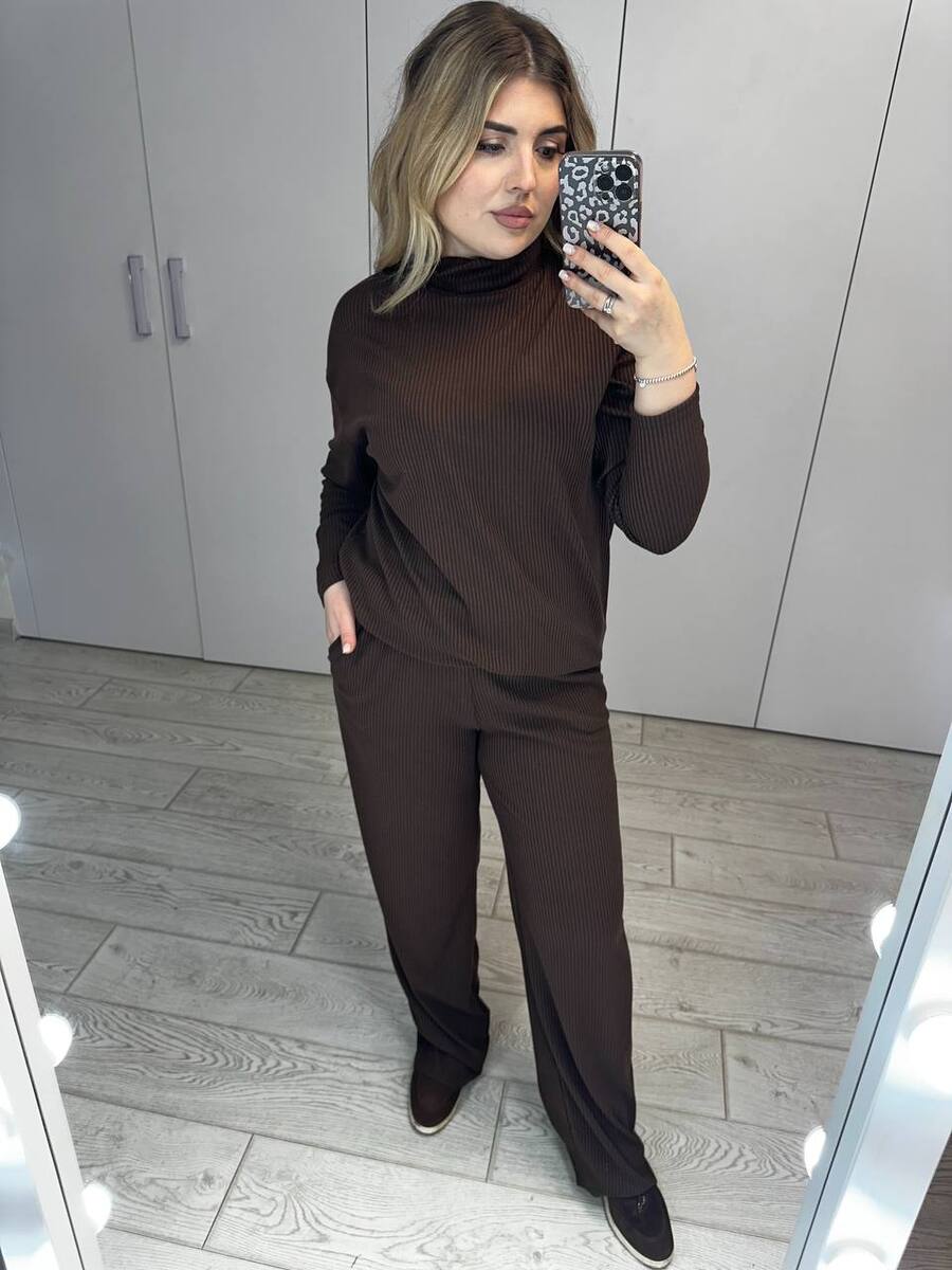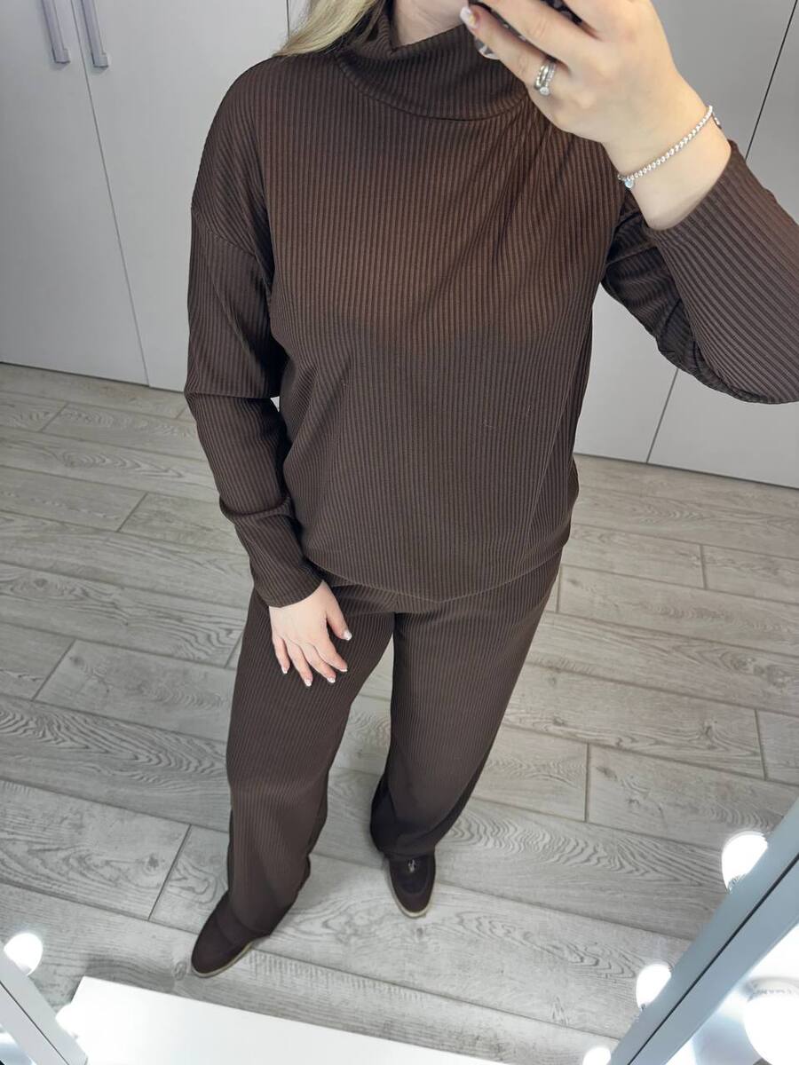Стильний та комфортний комплект, який ідеально підходить для щоденного носіння. М’який трикотаж у рубчик добре тягнеться, приємний до тіла та красиво підкреслює фігуру. Костюм складається з двох елементів, які можна носити разом або поєднувати з іншими речами гардеробу. Чудовий вибір для прогулянок, подорожей чи затишних образів на кожен день.
