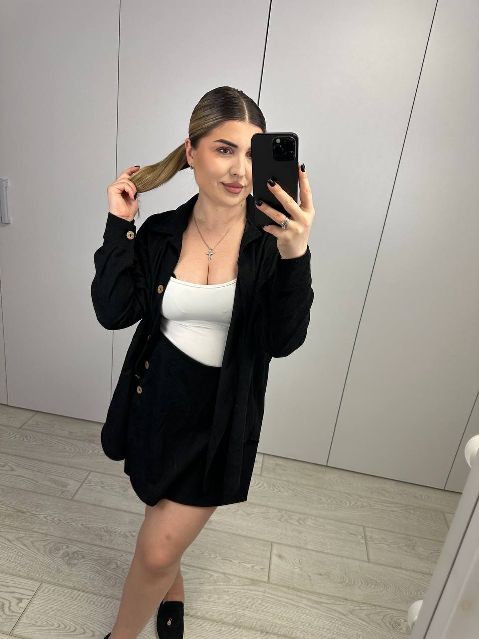Стильний костюм двійка, який складається з сорочки і спідниці-шорти. Трендове поєднання, яке можна носити як разом, так і окремо