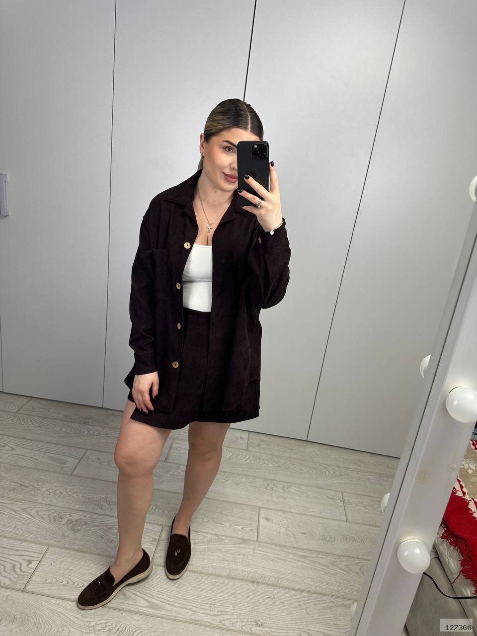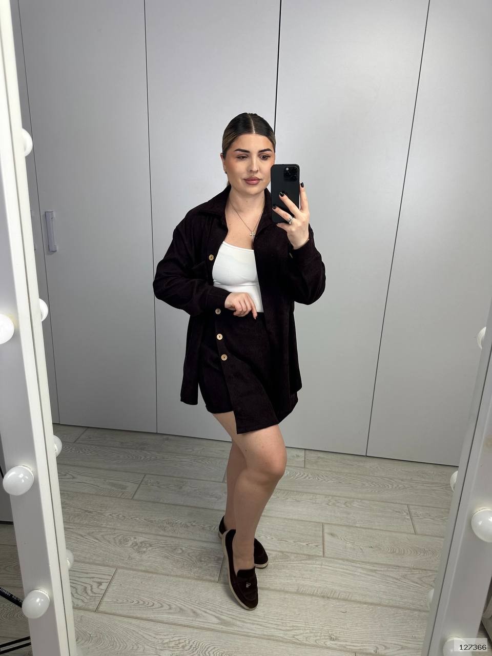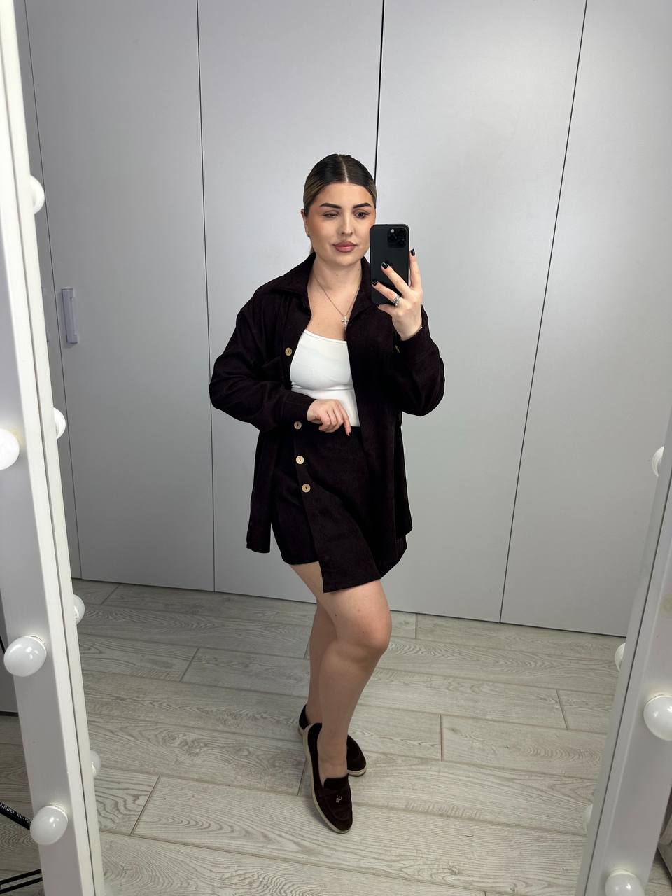 Стильний костюм двійка, який складається з сорочки і спідниці-шорти. Трендове поєднання, яке можна носити як разом, так і окремо