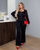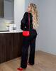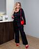 Костюм-двійка : блуза з округленим низом , ряд ґудзиків на ніжці , кишені-клапани ( імітація) , довгий рукав, П-образний виріз , штани на ґудзику та молнії, ззаду на резинці, з боків кишені. Ідеальний варіант , як для офісного та нарядного стилю.