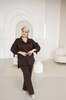 Штани на резинці, з високою посадкою. Універсальний дизайн — під кросівки, лофери чи підбори. Рукава в сорочці регулюються патами, що дає можливість легко перетворити рукав повної довжини на рукав 3/4. Приємна до тіла тканина, має розтяжність.