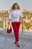 | Ткань: | Блузка: штапель + апплікація . Брюки: Костюмка діагональ. |
