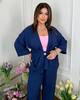 стильний прогулянковий костюм зі льону «Бохо»: вільний кардиган під пояс + Штани з високою посадкою на гумці, з кишенями у бічних швах та куліскою на поясі.