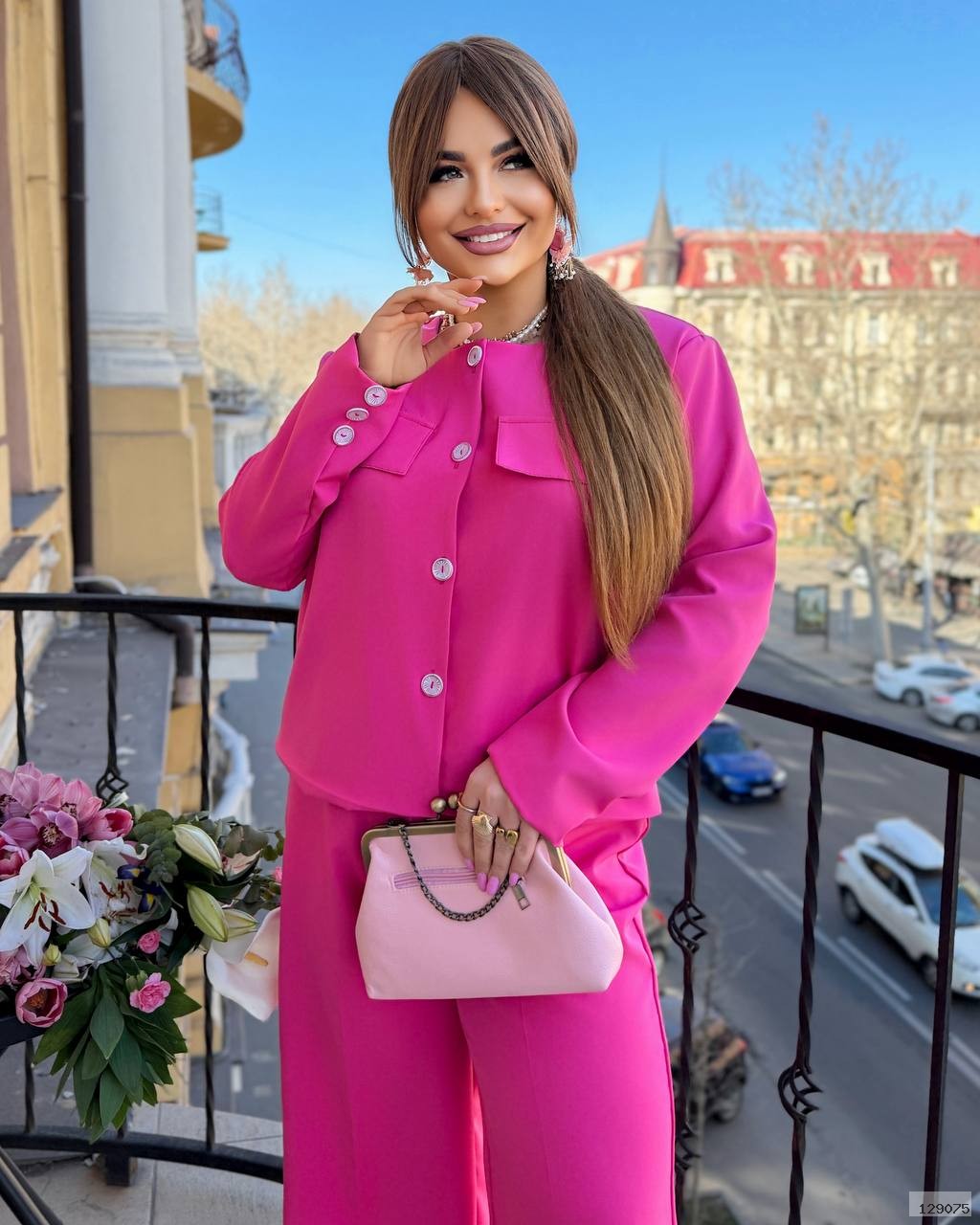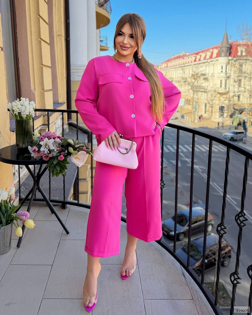 Класичний костюм на підкладці. Піджак на ґудзиках, кармани клапани, в плечах паралонові під плечники. Штанці кюлоти Ідеальний варіант як офісний look, святково-діловий або прогулянковий. Гарно сідає по фігурі.