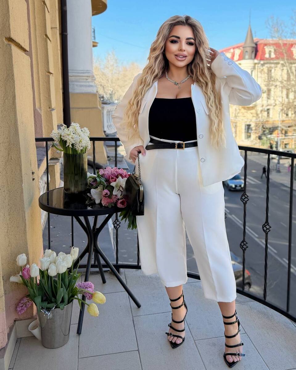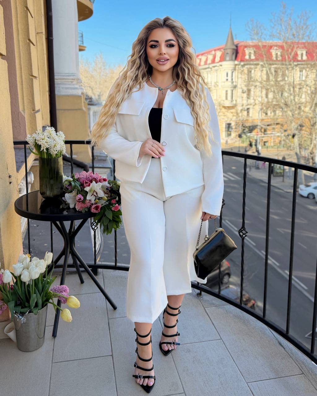 Класичний костюм на підкладці. Піджак на ґудзиках, кармани клапани, в плечах паралонові під плечники. Штанці кюлоти Ідеальний варіант як офісний look, святково-діловий або прогулянковий. Гарно сідає по фігурі.