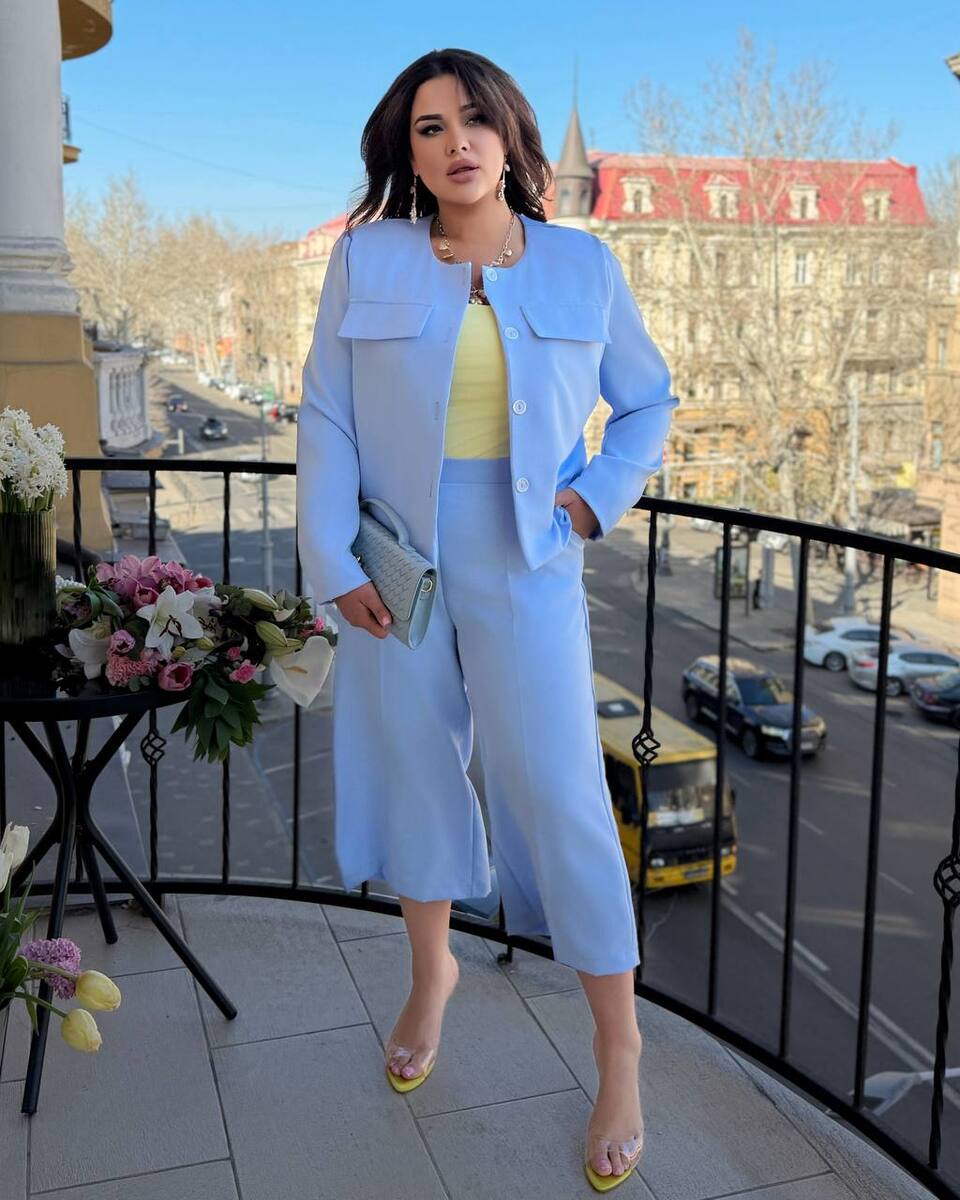 Класичний костюм на підкладці. Піджак на ґудзиках, кармани клапани, в плечах паралонові під плечники. Штанці кюлоти Ідеальний варіант як офісний look, святково-діловий або прогулянковий. Гарно сідає по фігурі.