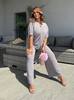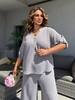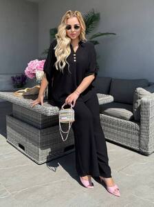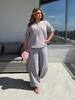Штани палаццо вільного крою мають бічні кишені та резинку на талії, футболка вільного крою декорована ґудзиками, довжина рукава регулюється