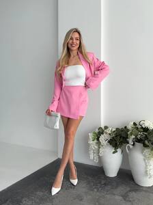 Стильний костюм двійка жакет з плечиками на підкладці + шорти-спідниця