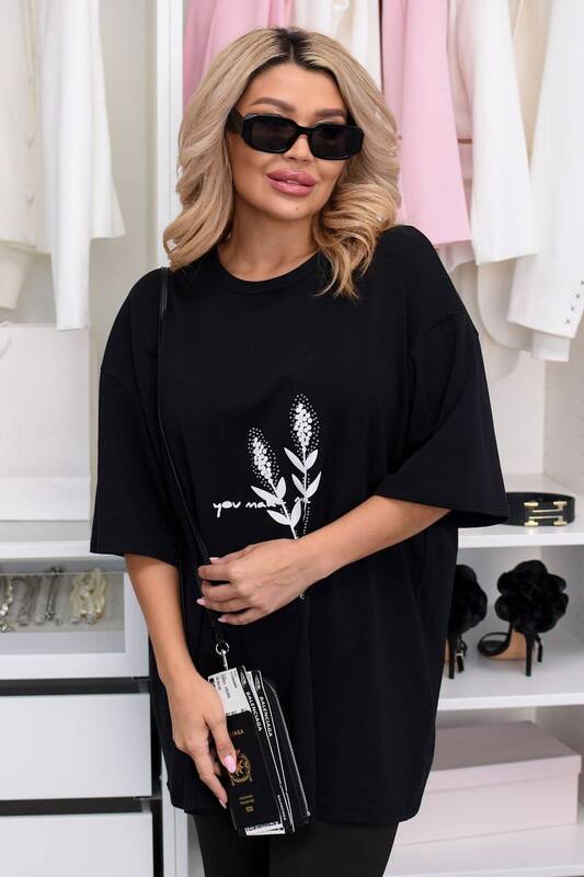 Футболка оверсайз, прикрашена стразами, лосини без кишень, пояс резинка