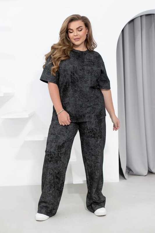 Цей костюм — ваш новий must-have для стильного, але комфортного образу! Футболка вільного крою з класичною круглою горловиною і коротким рукавом з опущеною лінією плеча — це не тільки про стиль, але й про максимальний комфорт. Ідеальний вибір для легких і невимушених образів, коли хочеться виглядати ефектно без зайвих зусиль. Штани прямого крою з гумкою на талії і зручними бічними кишеньками додають практичності та свободи рухів. Цей костюм чудово підходить для будь-якої ситуації — від прогулянок до відпочинку вдома чи зустрічей з друзями.
