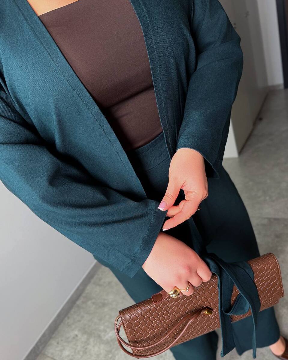 Брюки та кардиган на запах — жіночний силует, комфорт і елегантність в одному образі.