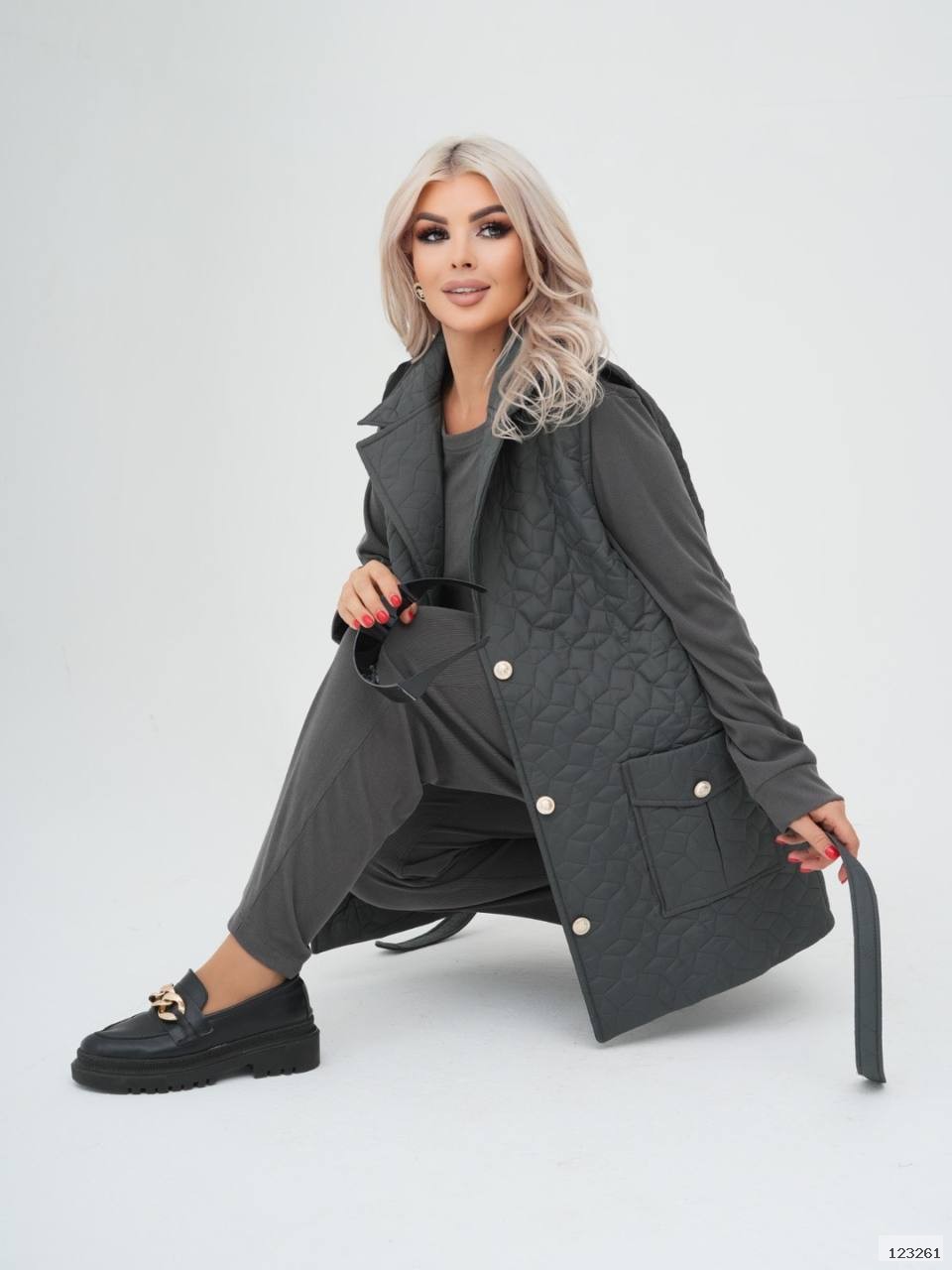 Осінній утеплений костюм трійка - жилет + світшот + штани. Ангора має гарну розтяжність та щільність, жилет оздоблений паском та кишенями