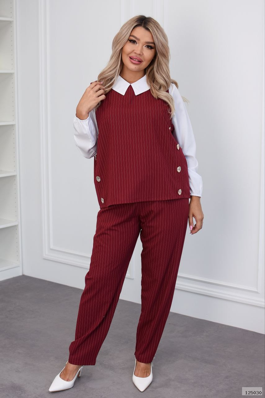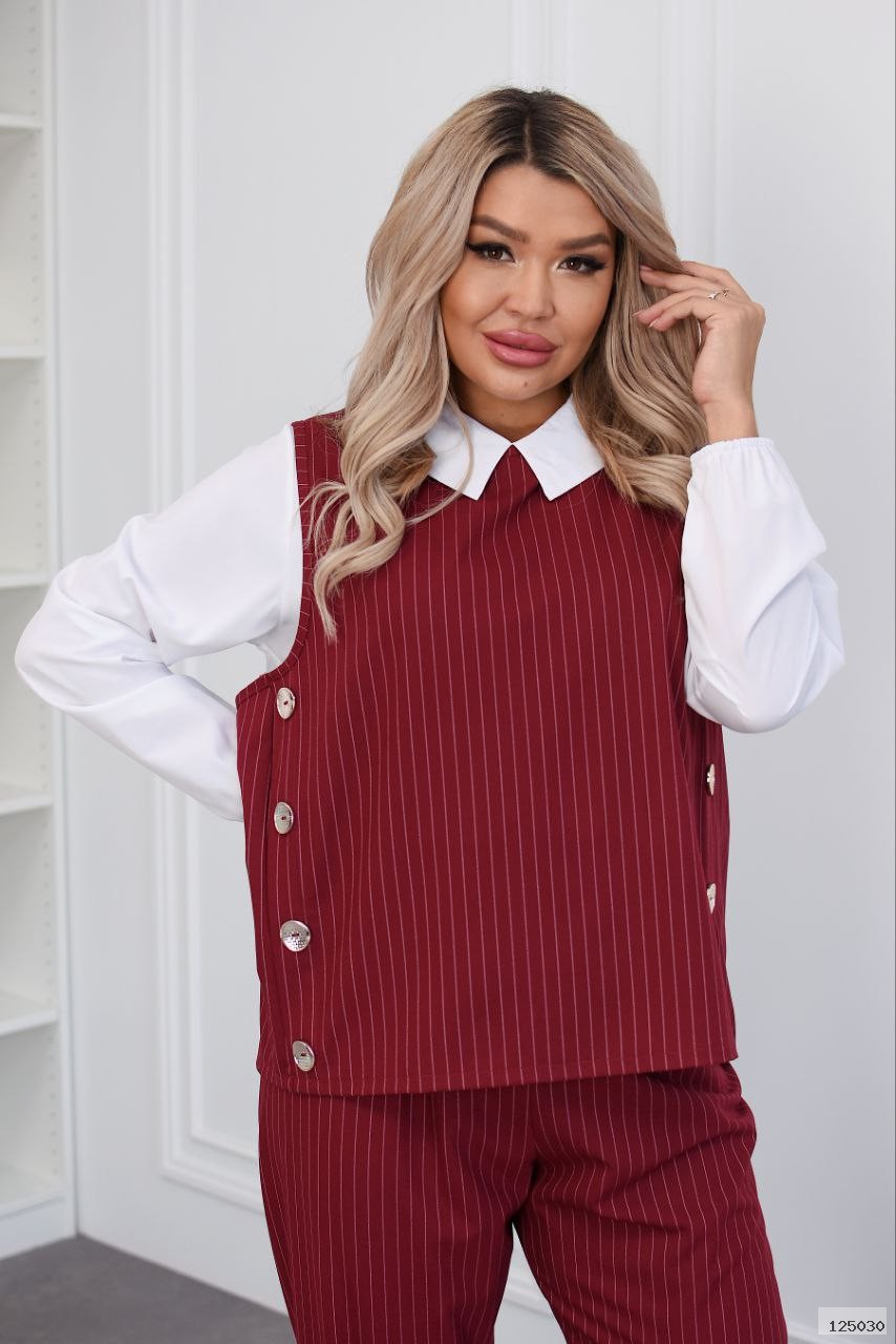 Главная- Женская одежда XL+ (Plus Size)- Костюмы XL+- Брючні костюми XL+-Костюм трійка 125030