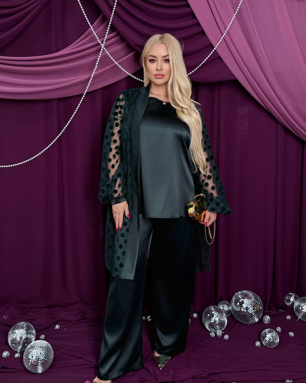 Стильний, ефектний костюм трійка з якісної преміальної тканини , ідеальний для створення витонченого образу.Накидка створює легкість , виглядає сучасно і додає родзинку образу.