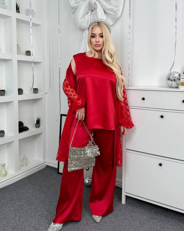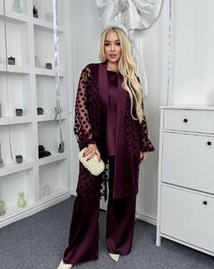 Стильний, ефектний костюм трійка з якісної преміальної тканини , ідеальний для створення витонченого образу.Накидка створює легкість , виглядає сучасно і додає родзинку образу.