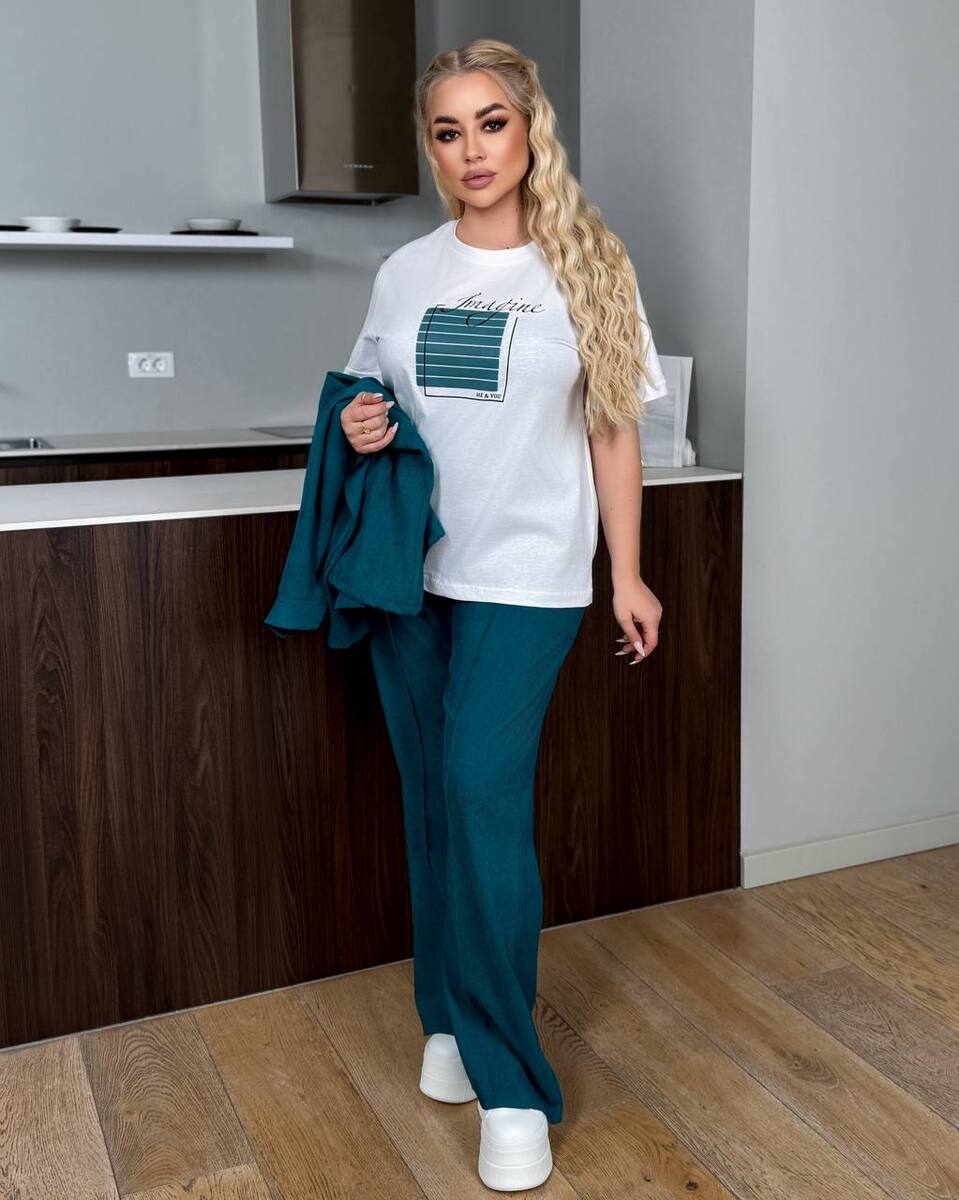 Стильний та комфортний костюм-трійка, який складається з кофти на блискавці, штанів та футболки. Легка, м’яка тканина приємна до тіла та не обмежує рухи — ідеальний варіант для щоденного носіння.