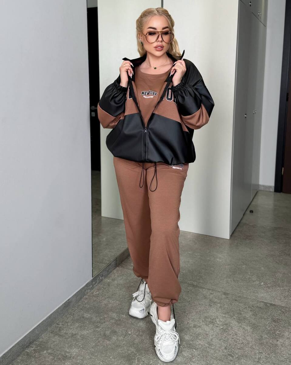 Бомбер+футболка+джогери з якісним накатом. Бомбер регулюється по низу резинкою.Футболка оверсайз та джогери які регулюються резинкою по низу.Якісний накат робить костюм стильним та яскравим.
