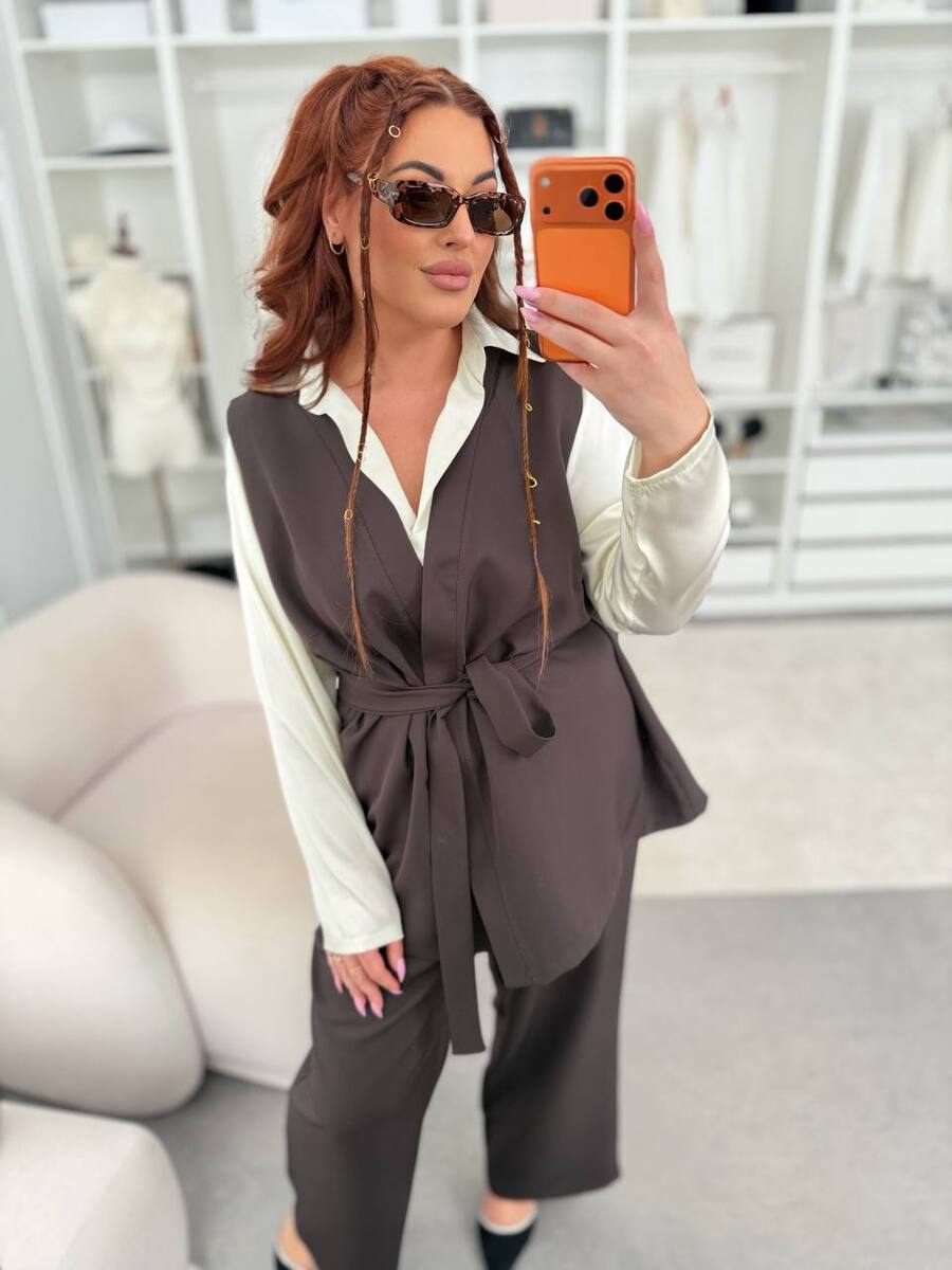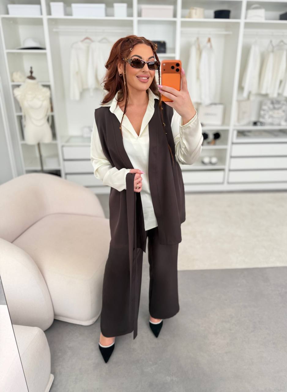 Главная- Женская одежда XL+ (Plus Size)- Костюмы XL+- Брючні костюми XL+-Костюм трійка 127969