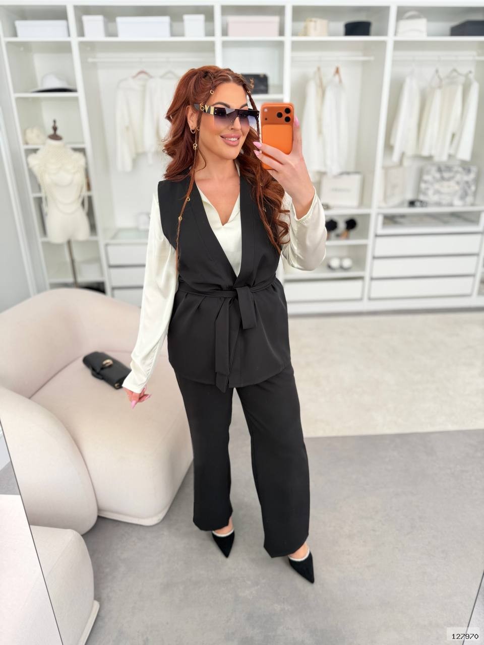 Главная- Женская одежда XL+ (Plus Size)- Костюмы XL+- Брючні костюми XL+-Костюм трійка 127970