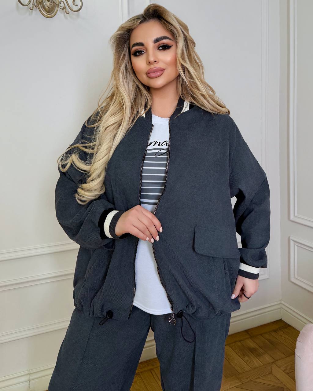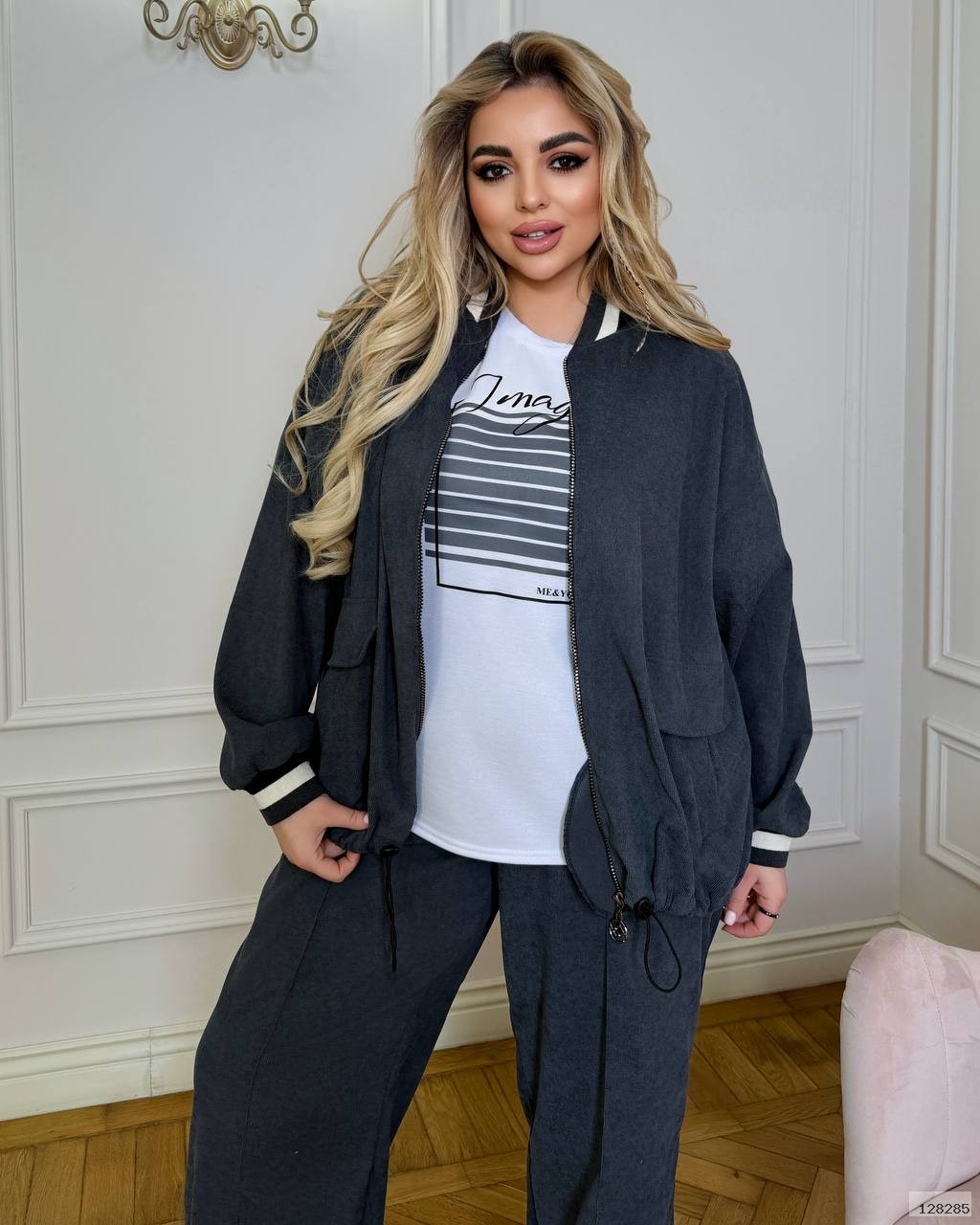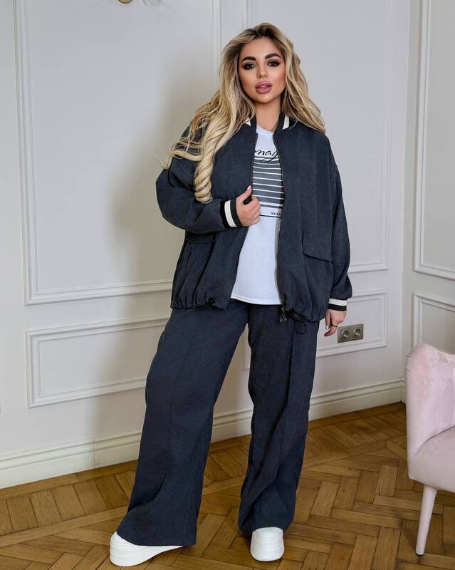 Стильний костюм трійка - бомбер, футболка і штани. Дуже гарний вибір на весну