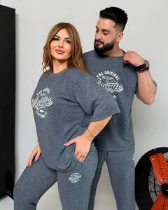 Зручний комплект,який складається з вільної футболки та штанів на резинці зі шнурком і кишенями,з резинкою внизу.