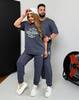 Зручний комплект,який складається з вільної футболки та штанів на резинці зі шнурком і кишенями,з резинкою внизу.