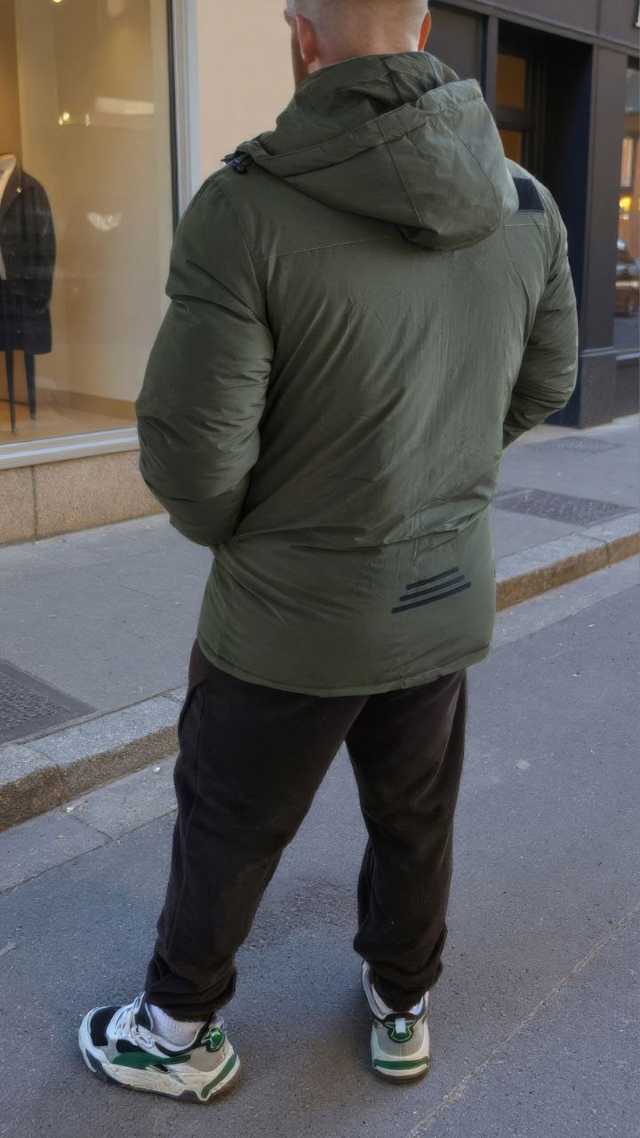 Куртка з високим коміром і знімним капюшоном на блискавці. Прямий силует,центральна застібка-блискавка з кнопками,місткі кишені та якісна фурнітура.