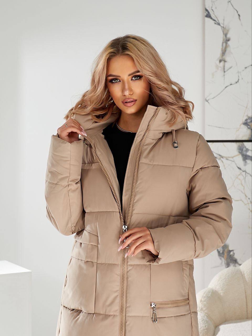Пальто застібається на блискавку, на рукавах рибана, якісна дорога фурнітура. Має зручний капюшон , забезпечує надійний захист від морозів.