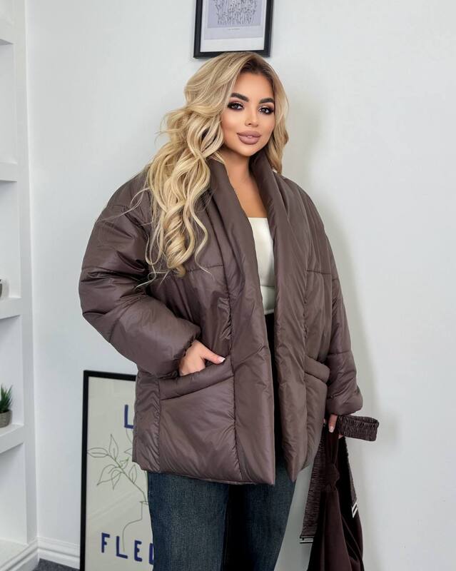 Тепла куртка цікавого крою. Без застібок, ремінь в комплекті