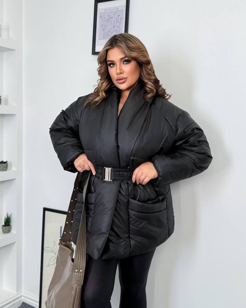 Тепла куртка цікавого крою. Без застібок, ремінь в комплекті