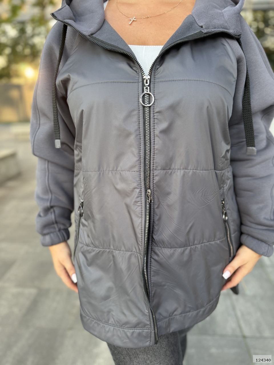 Стильній та комфортний подовжений кардиган прямого крою, з капюшоном та двосторонюю блискавкою.