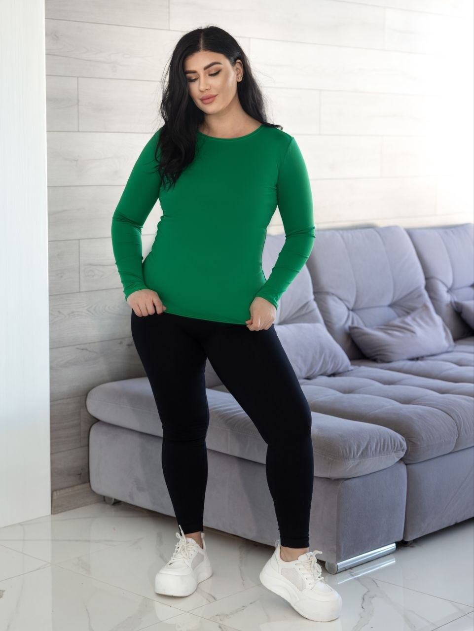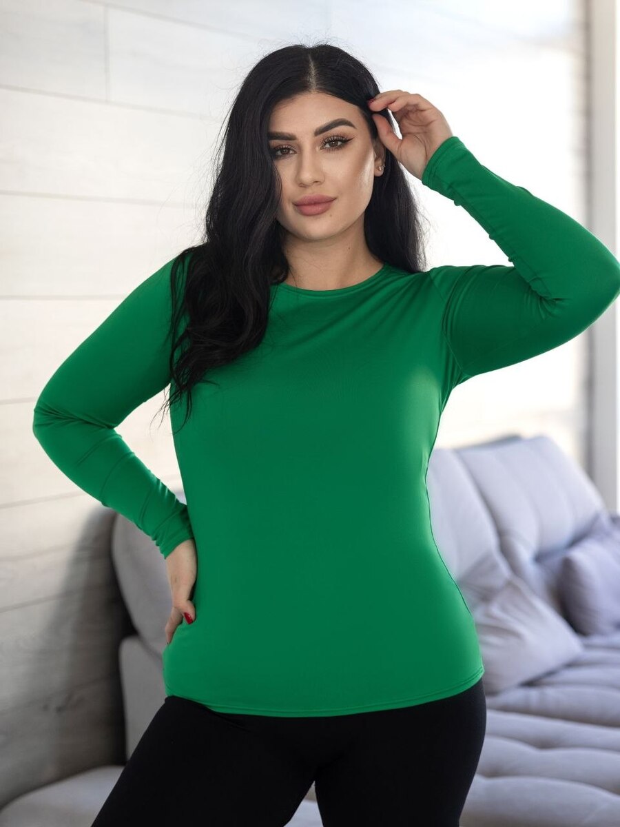 Лонгслів гарно облягає фігуру, підкреслюючи силует та не сковуючи рухи