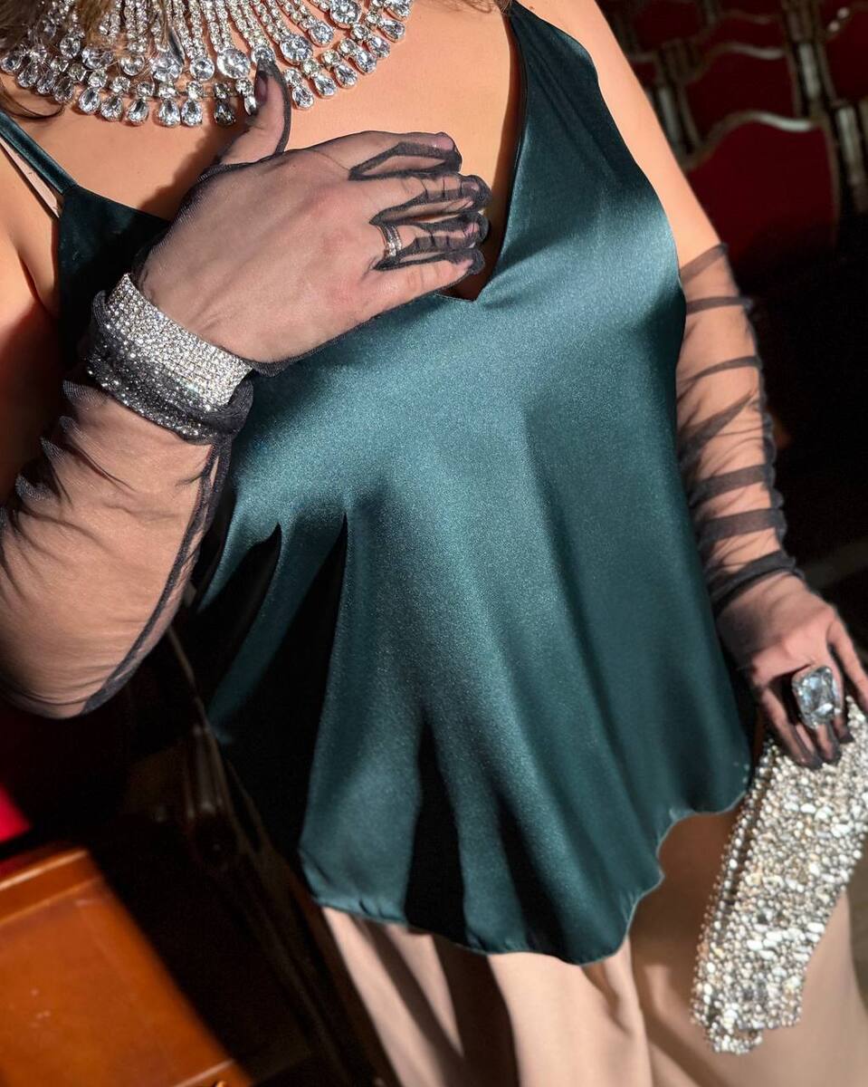 Елегантна майка з преміального шовку Армані — ніжна, приємна до тіла та з красивим благородним блиском. Матеріал м’яко струмує, не просвічується й чудово тримає форму.