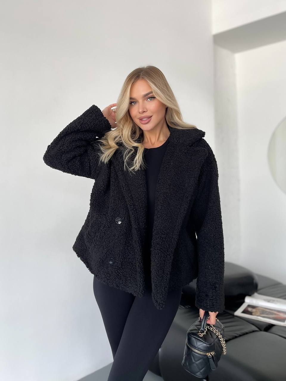 Виконана з щільного теплого хутра Тедді на підкладці — дарує комфорт і тепло навіть у прохолодну погоду. Вільний силует та спущена лінія плеча створюють стильний oversize-ефект, який легко поєднується з джинсами, сукнями чи трикотажними костюмами.