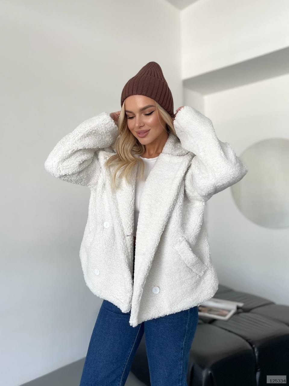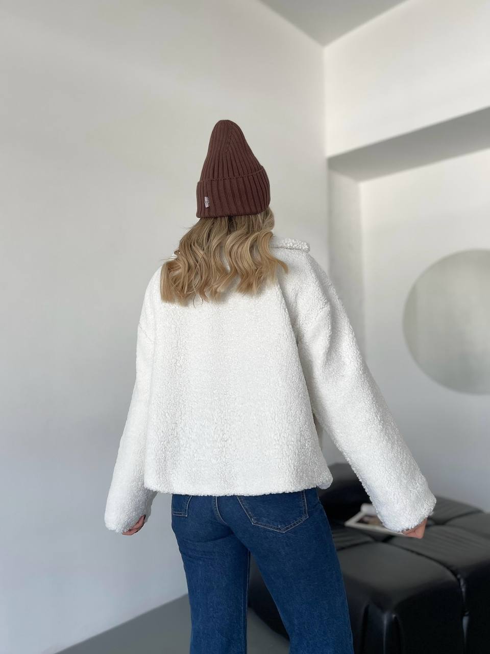 Виконана з щільного теплого хутра Тедді на підкладці — дарує комфорт і тепло навіть у прохолодну погоду. Вільний силует та спущена лінія плеча створюють стильний oversize-ефект, який легко поєднується з джинсами, сукнями чи трикотажними костюмами.