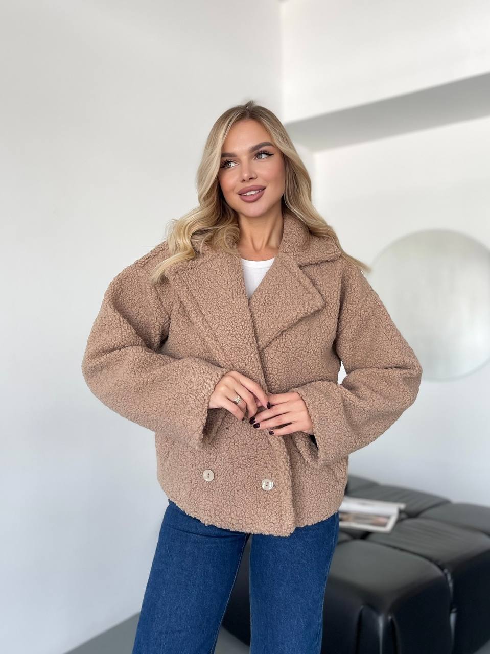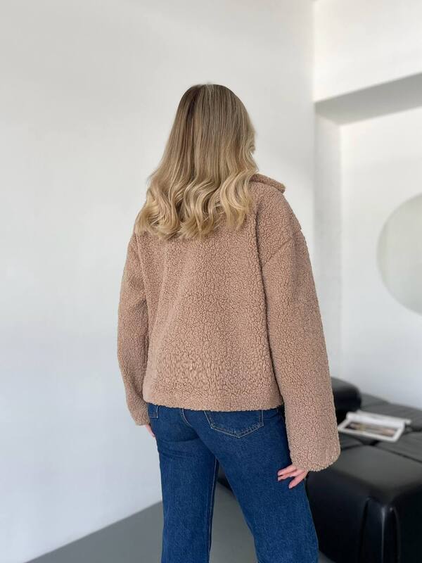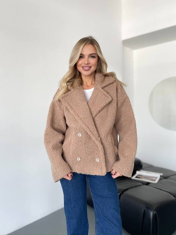 Виконана з щільного теплого хутра Тедді на підкладці — дарує комфорт і тепло навіть у прохолодну погоду. Вільний силует та спущена лінія плеча створюють стильний oversize-ефект, який легко поєднується з джинсами, сукнями чи трикотажними костюмами.