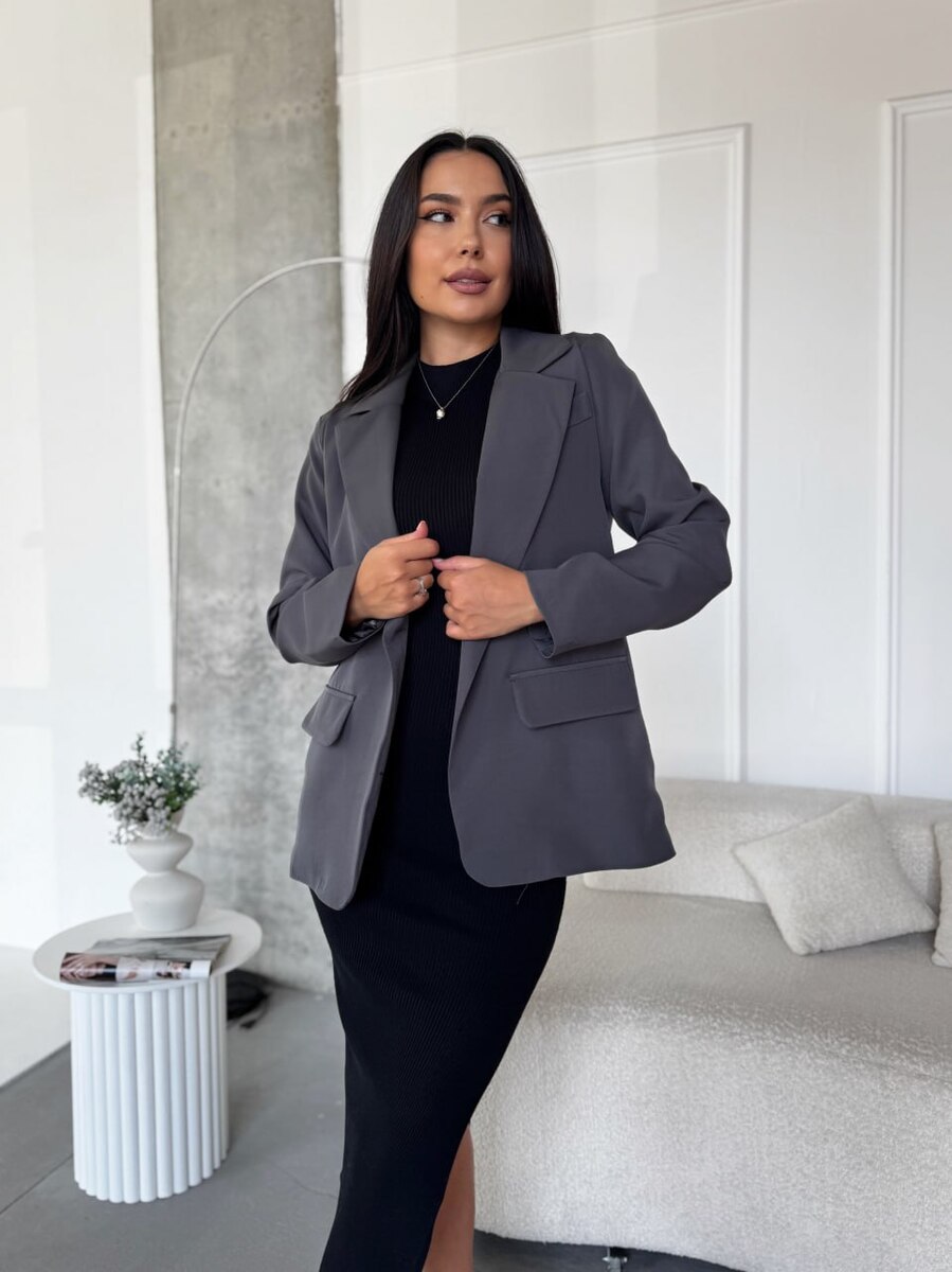 Стильний класичний піджак з підкладкою та підплічниками. Модель виконана з якісної костюмної тканини, яка добре тримає форму та забезпечує комфорт при носінні. Без кішень. Підходить як для офісних образів, так і для стильних повсякденних луків.