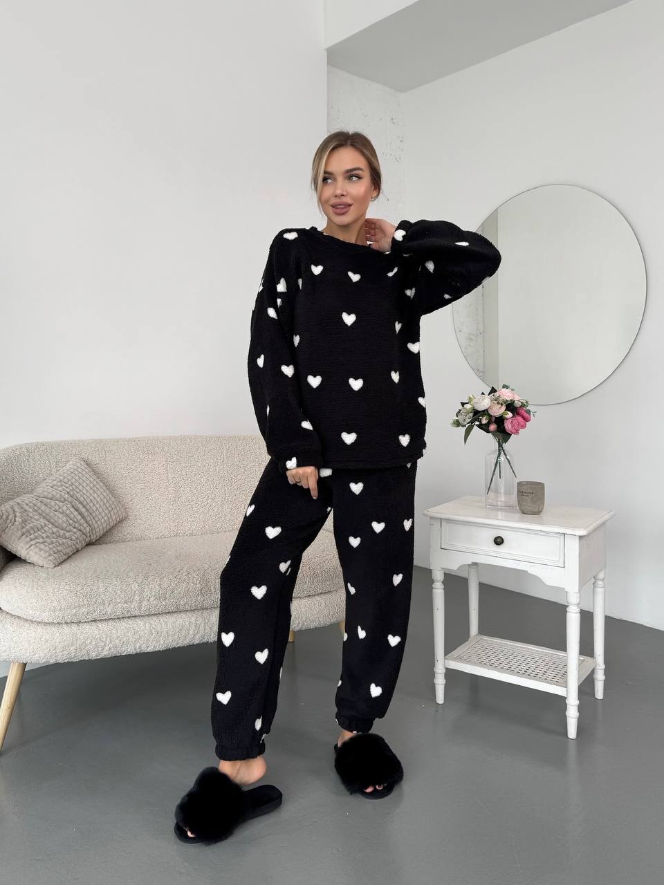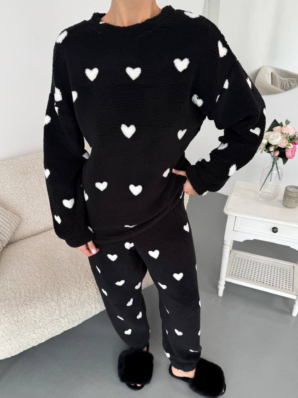 Неймовірно м’який, пухнастий та дуже теплий комплект, що дарує максимальний комфорт. Тканина приємна до тіла, добре тягнеться та не обмежує рухів. Ідеальний варіант для дому, релаксу та затишних вечорів