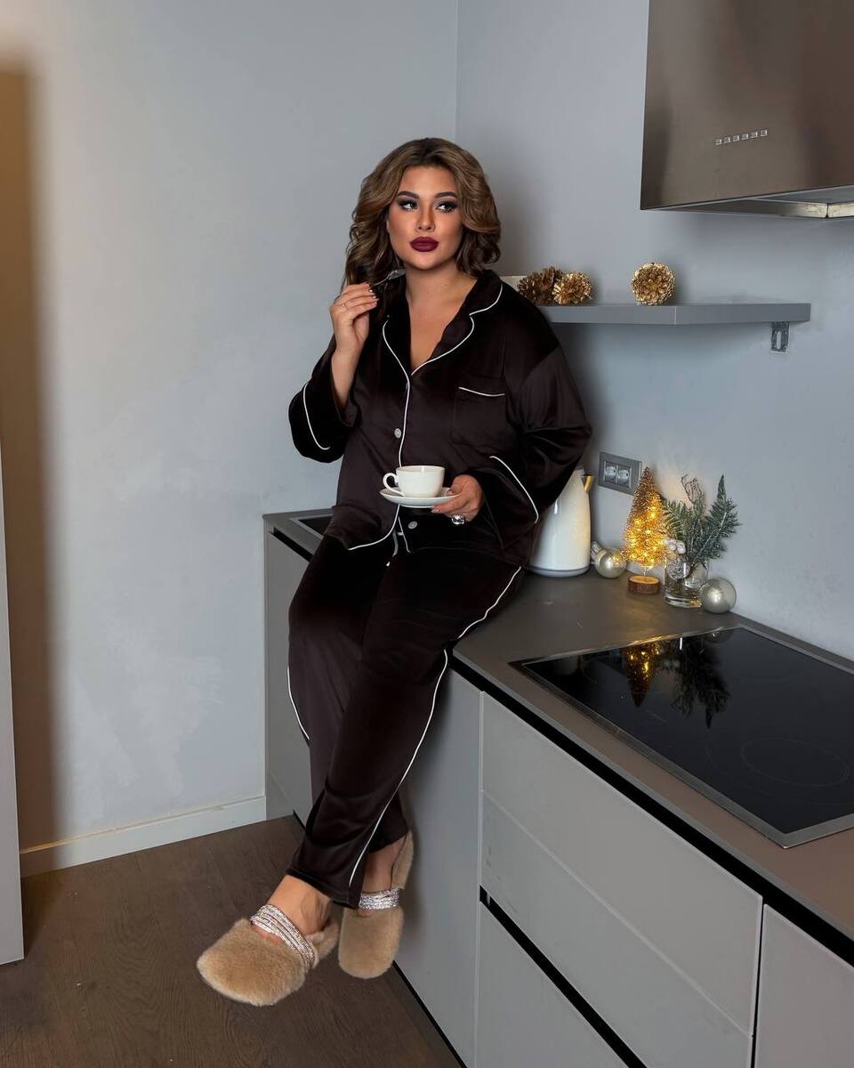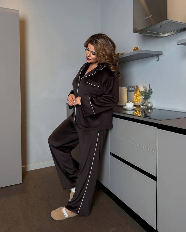 Затишна велюрова піжама, що складається зі зручних прямих штанів та класичної сорочки на гудзиках. М’який велюр приємний до тіла, добре тримає тепло і дарує комфорт під час сну та відпочинку.