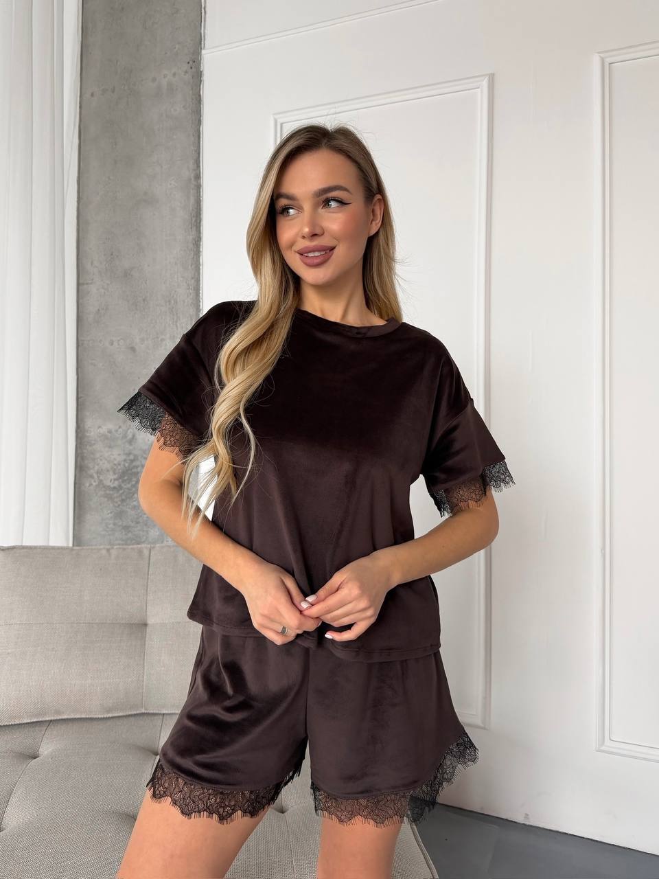 Стильна та дуже м’яка піжама, яка подарує комфорт і затишок під час відпочинку. Велюрова тканина приємна до тіла, ніжна на дотик та виглядає охайно й красиво.