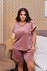 Неймовірно комфортний домашній комплект — піжама з якісного велюру на бавовняні основі (розтяжність висока). Футболка прямого вільного силуету, виріз горловини круглий, рукав цільновикроєний (рукав декоровано мереживом).