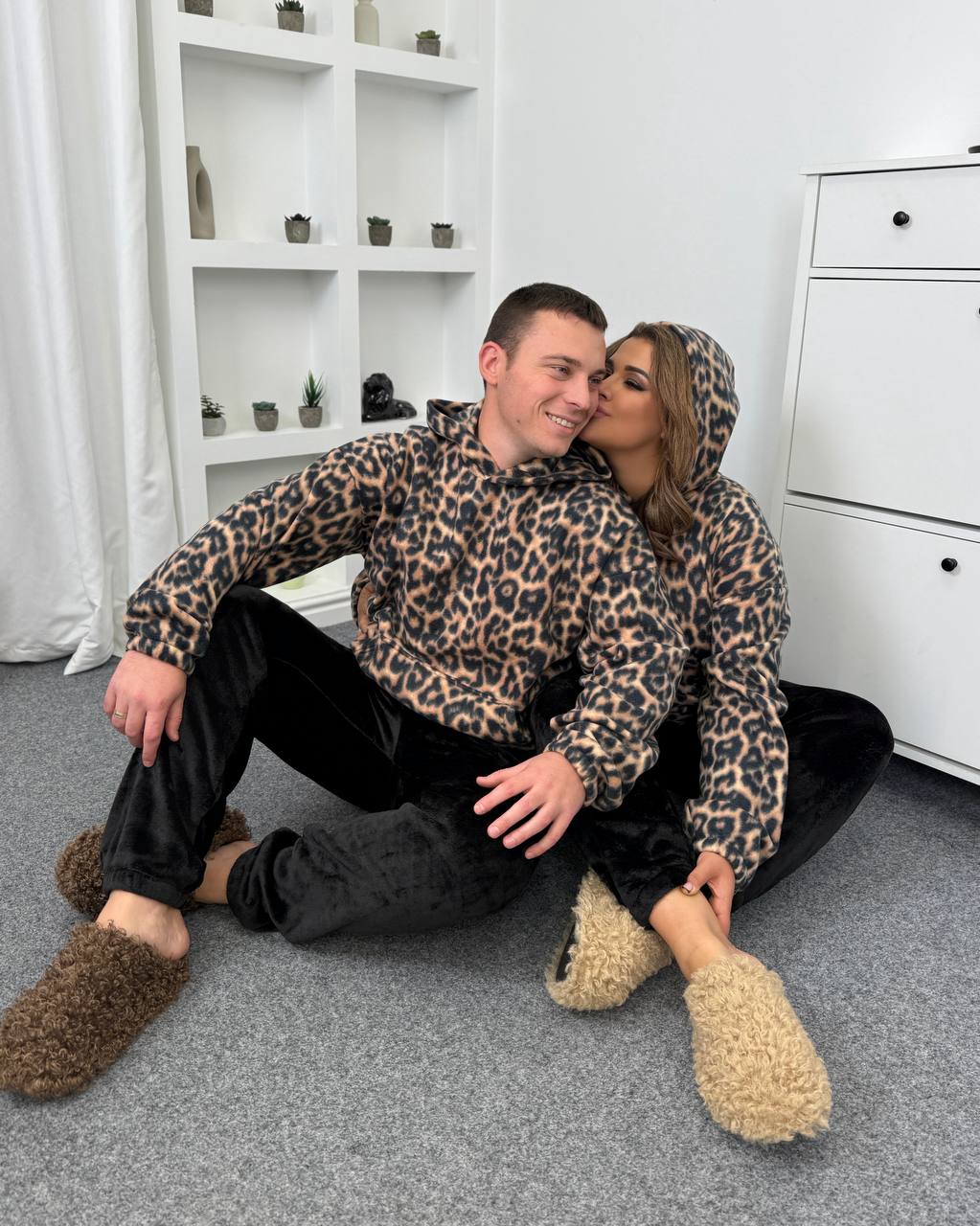 Затишна піжама,що складається з м’якої кофти-кенгуру з капюшоном та штанів на еластичній резинці зі шнурком і кишенями.