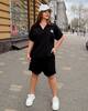 Стильний комфортний костюм з шортами з трикотажу еластан : футболка поло у стилі оверсайз з акс + шорти з високою посадкою з кішенями у бічних швах, з куліскою на поясі