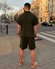 Стильний комфортний костюм з шортами з трикотажу еластан : футболка поло у стилі оверсайз з акс + шорти з високою посадкою з кішенями у бічних швах, з куліскою на поясі