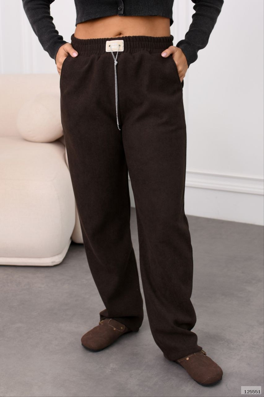 Теплі штани прямого крою на резинці по поясу , мають бічні кишені.