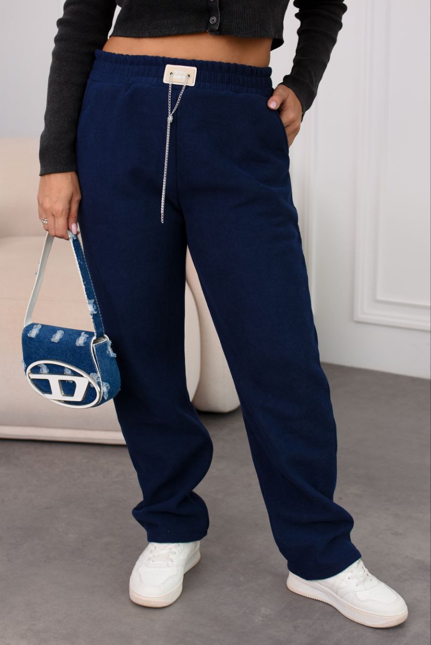 Теплі штани прямого крою на резинці по поясу , мають бічні кишені.
