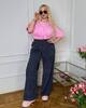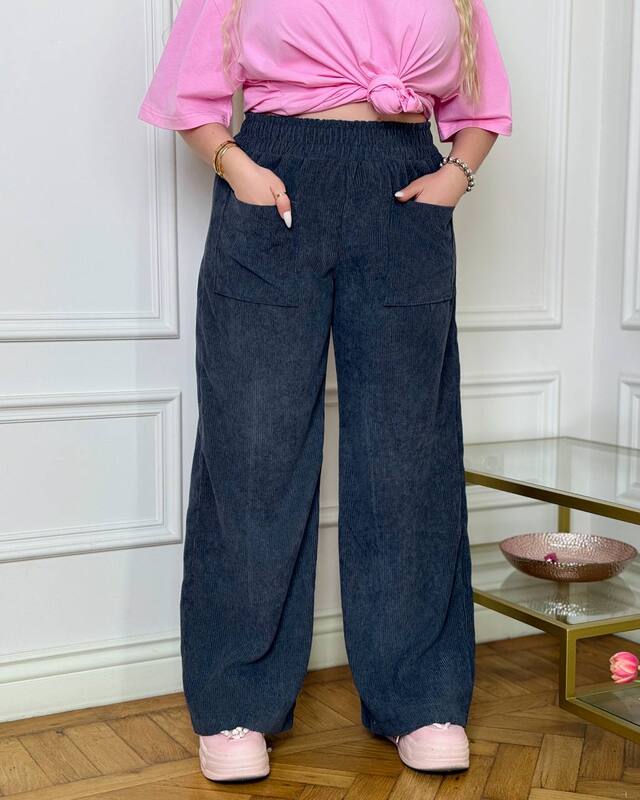 Жіночі брюки вільного крою з м’якого вельвету в розслабленому casual-стилі. Модель із високою посадкою та зручною еластичною резинкою на талії, що забезпечує комфорт і гарно підкреслює силует. Широкі прямі штанини красиво струмують та візуально подовжують ноги. Спереду — великі накладні кишені, які додають практичності та стильного акценту .