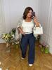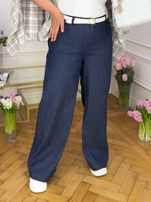 Штани посадка висока, застібаються на блискавку та ґудзик, з двома кишенями позаду, до низу широкі