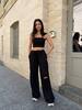 Штани прямого силуету на резинці, з ефектним розрізом на коліні — трендовий акцент, що додає зухвалості та стилю. Легка натуральна тканина дарує комфорт у спекотні дні