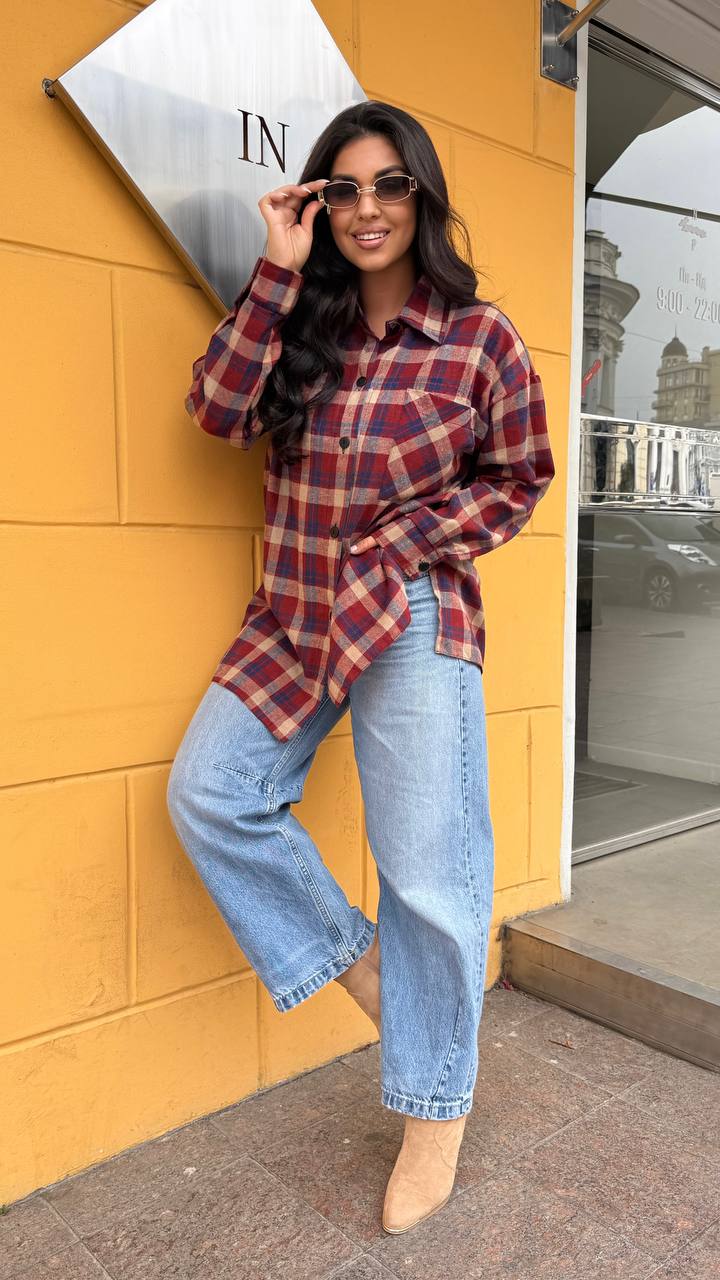 Сорочка вільного фісону з фланелю. Приємна тканина, трендові кольори